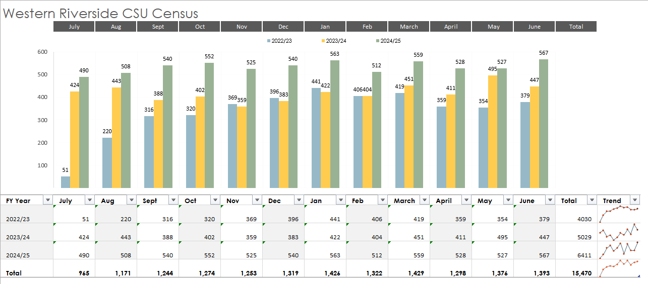 Today, we want to highlight the Western Riverside Crisis Stabilization Unit (CSU), which has achieved extraordinary milestones in providing crisis care to Riverside County. In June 2025, the program served 567 guests, breaking its previous record. Since opening in 2022, Western Riverside CSU has provided over 15,000 crisis services, with 6,411 crisis engagements in FY 24/25 alone.